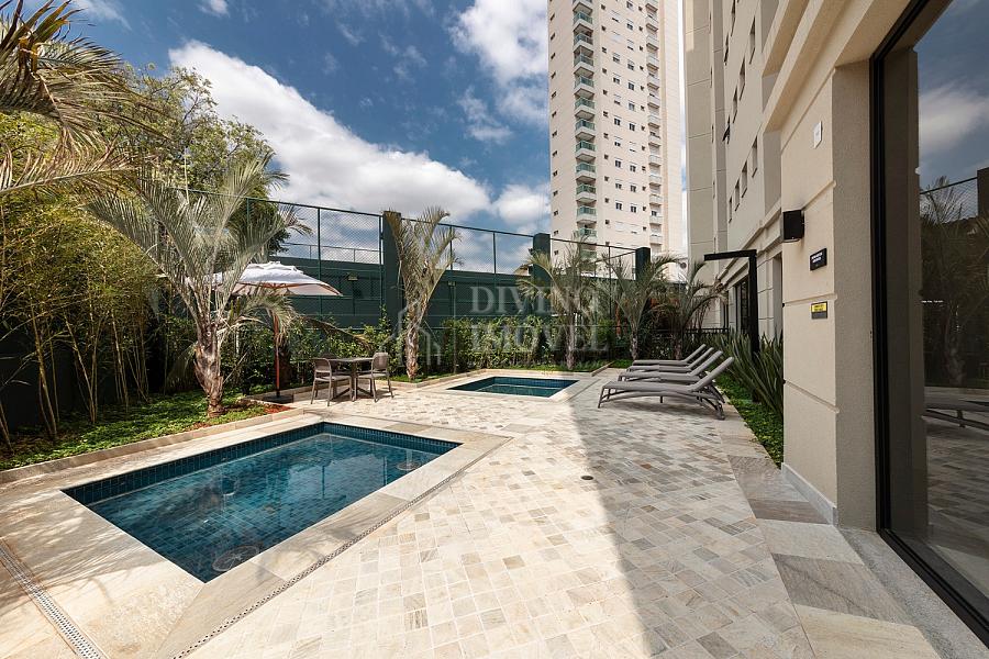 Condomínio cercado de muito verde, muito discreto, dispondo de brinquedoteca, fitness, pet agility, piscina coberta e aquecida, piscina infantil, playground, quadra gramada, salão de festas, sauna, solarium e spa.