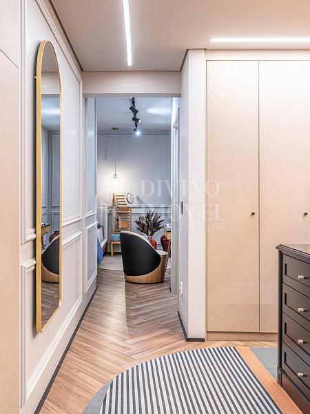Acesso de serviço com porta blindada e codificada, lavanderia planejada com banheiro de apoio. A unidade ainda possui sistema de aspiração central, aquecimento por caldeira, ar split Fujitsu nas suítes e salas e varanda técnica de fácil acesso. 4 vagas de garagem.