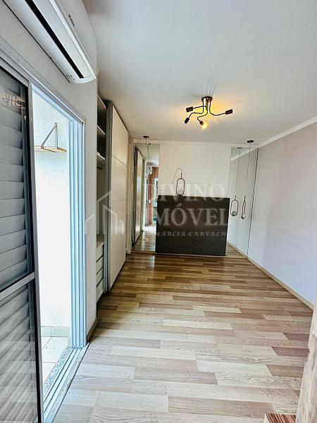 No piso superior, a suíte com ar-condicionado e os dormitórios planejados, garantem conforto e privacidade.